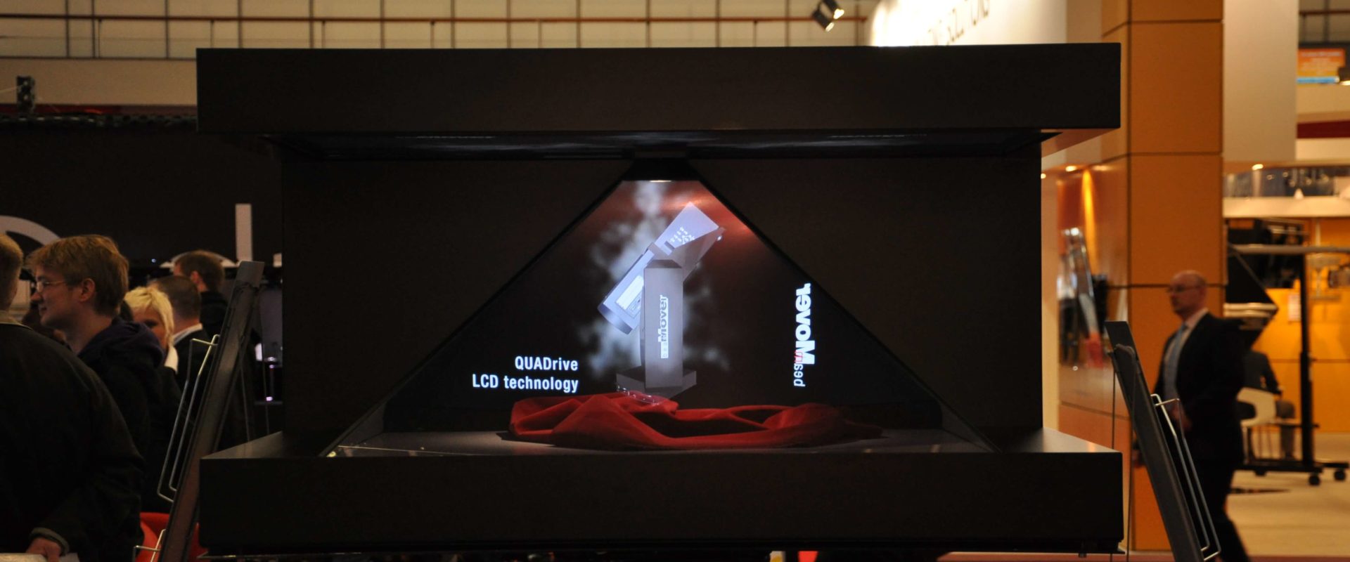 Piramida holograficzna to jeden z najpopularniejszych hologramów wykorzystywanych na stoiskach targowych, prezentacjach, konferencjach, prezentacjach produktów.